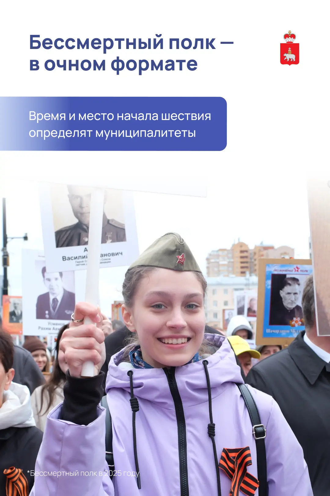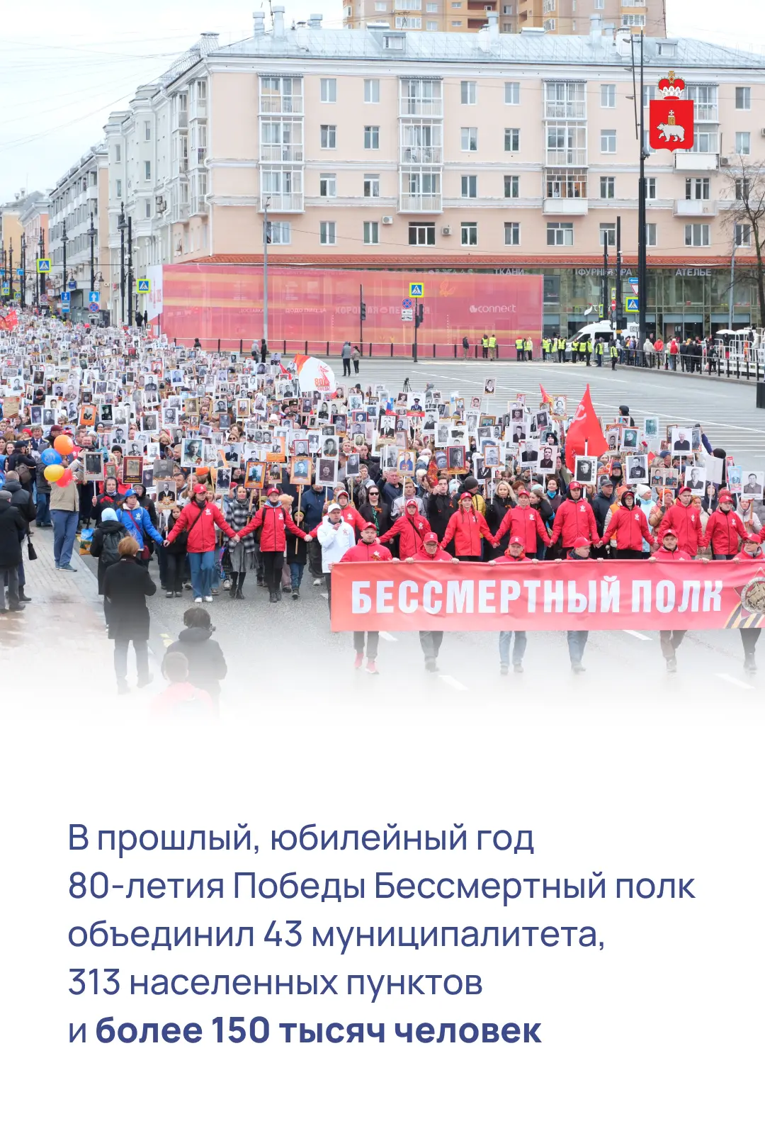 Для нашего региона это любимая и по-настоящему народная традиция. Приняли решение, что в этом году шествие состоится в очном формате 9 Мая. В День Победы жители Прикамья вновь смогут выйти с портретами своих родных — фронтовиков, тружеников тыла, всех, кто приближал Великую Победу.