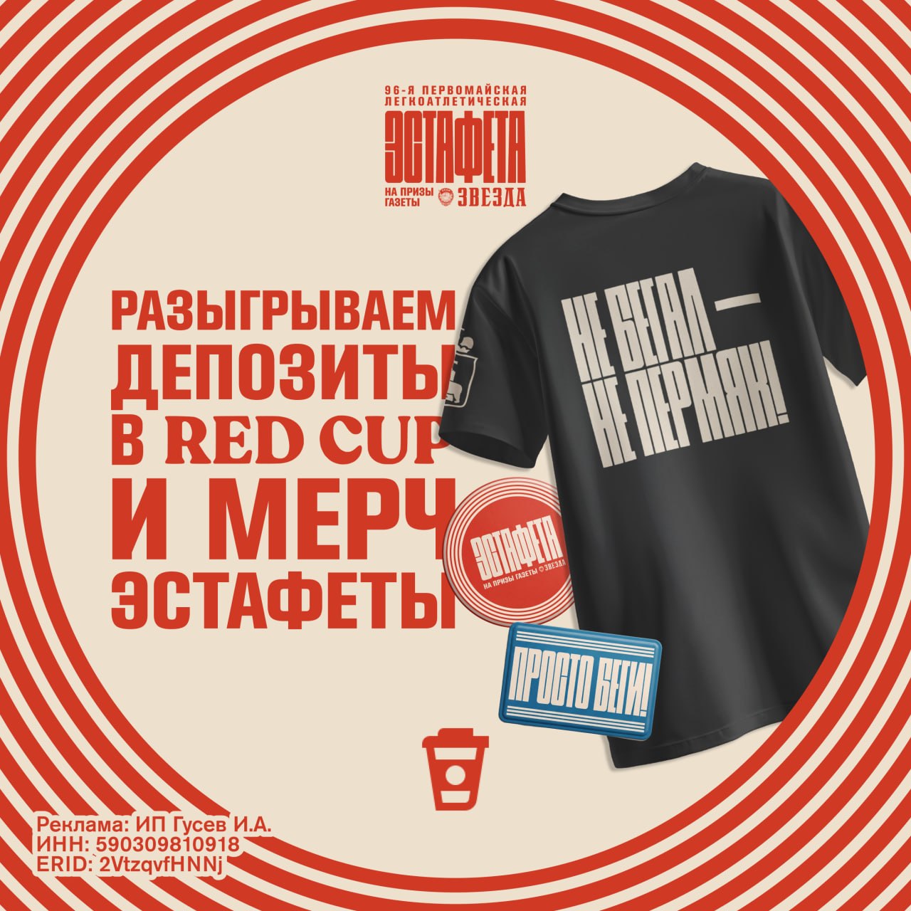Дарим 6 000 в RED CUP и мерч вместе с Первомайской эстафетой на призы газеты «Звезда»!
