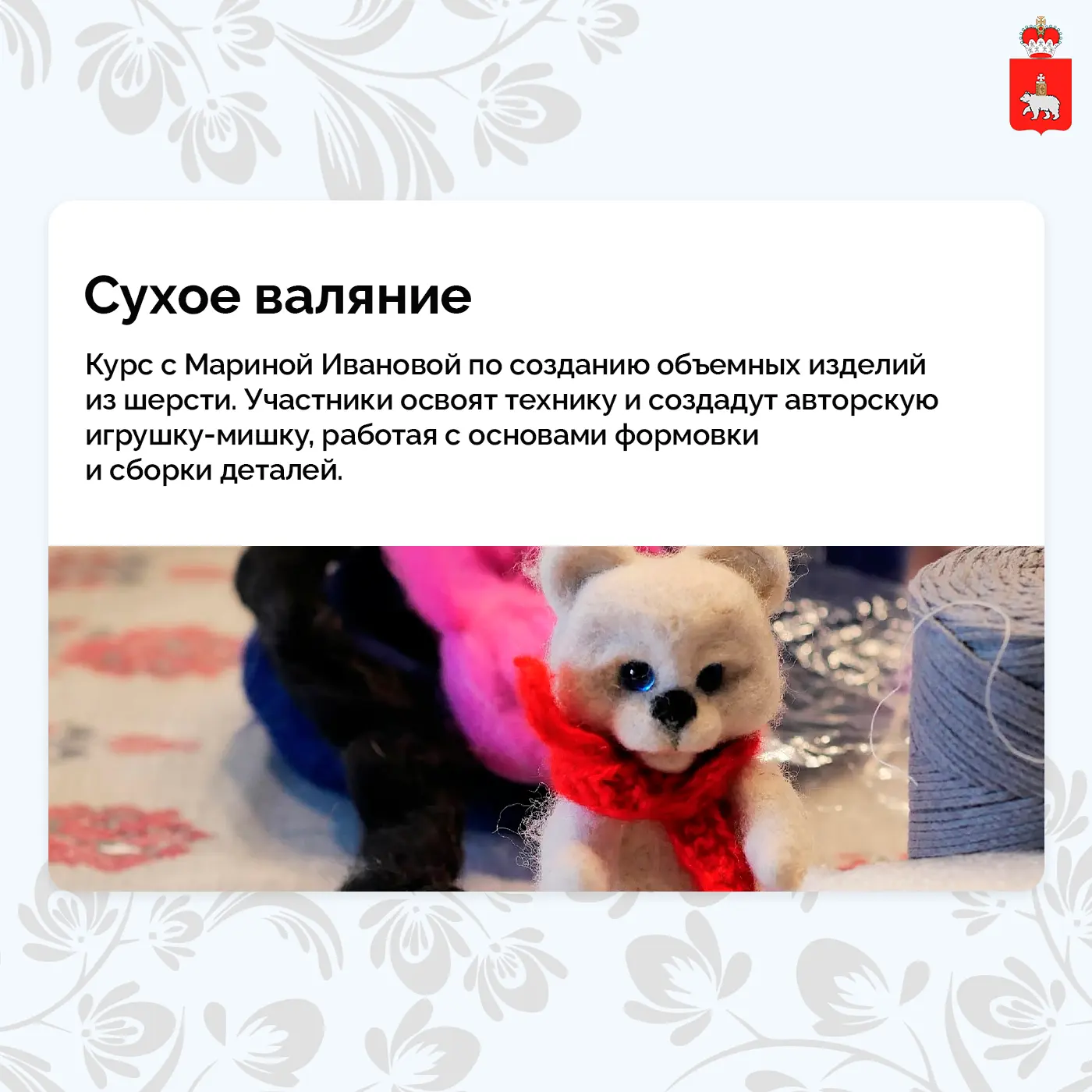 Открыт набор на курсы промыслотеки «Яснодело» с мастерами Пермского края. Участникам доступны занятия по шести направлениям: сажение по бели, ткачество, сухое валяние из шерсти, обережная вышивка, керамика и авторская кукла.