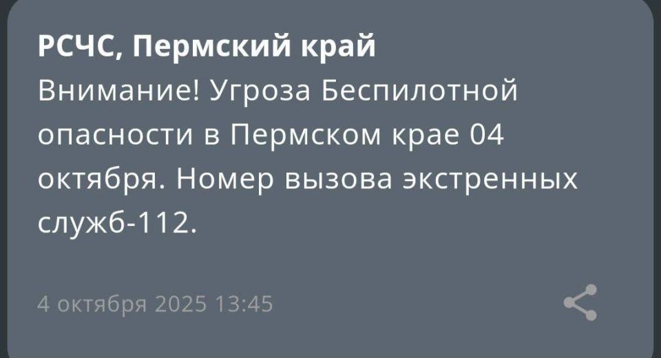 04.10.2025, 16:36 Режим «Беспилотной опасности» снят Подписывайся в MAX// В курсе.ру | Новости Перми