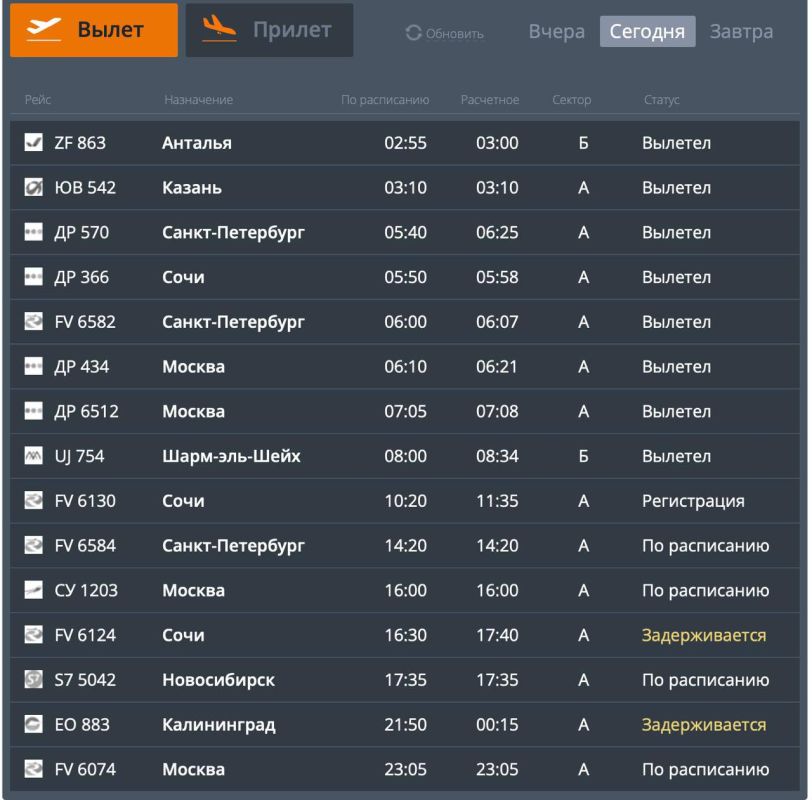 Больше всего времени придется ждать пассажирам вечерних вылетов авиакомпаний «Россия», «Икар» и Nordwind Airlines.Рейс FV 6124 Пермь — Сочи вылетит в 17:40 вместо 16:30Рейс EO 883 Пермь — Калининград вылетит в 00:15 вместо 21:50.Из прибывающих...