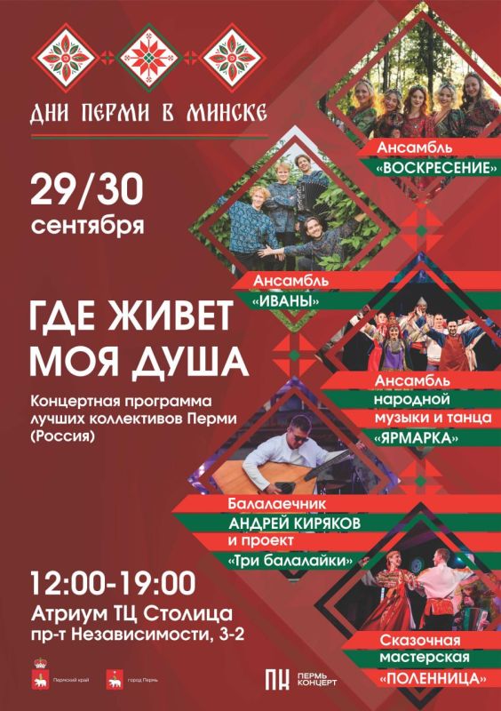 29 и 30 сентября белорусская столица будет встречать делегацию из Перми. В Минске в эти даты пройдут события, посвящённые нашему городу.Ведущие артисты Перми, входящие в состав «ПермьКонцерт», выступят в Минске с несколькими концертными программами...