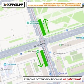 Минтранс сообщает, что место посадки и высадки в трамваи перенесено из-за продолжающихся дорожных работ.Пользуйтесь новыми платформами у перекрестка улиц Ленина и Борчанинова....