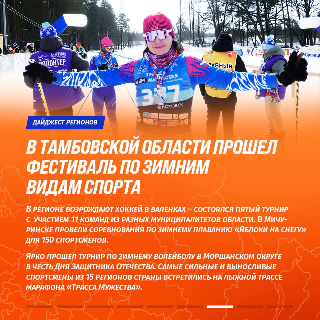 Сегодня узнаем, как обстоят спортивные дела в Пермском и Краснодарском крае, а также в Курской, Калужской, Омской, Тамбовской, Самарской и Тверской областях